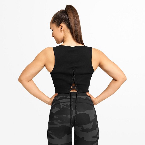 Das Astoria Laced Tank ist aus gerippter Jersey Baumwolle. Es ist sehr kurz geschnitten und hat eine raffinierte Rückenschnürung.